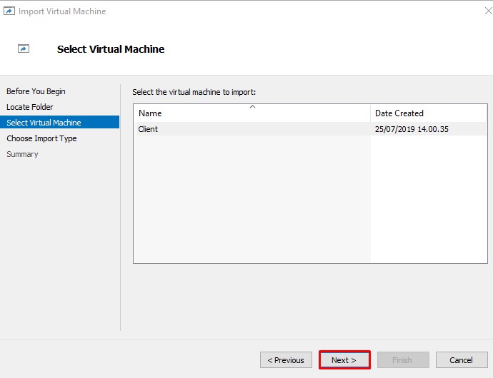 Sebagai contoh ini, saya akan mengekspor mesin virtual Client dari server (Hyper-v server).